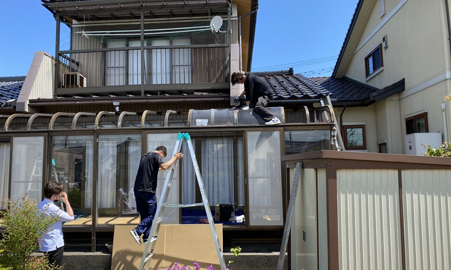 年始の豪雪で壊れてしまいサンルームの改修工事を行いました