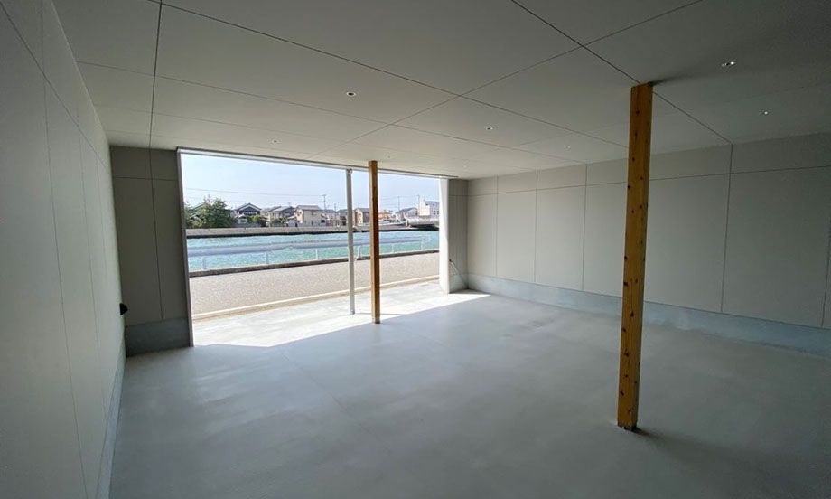 玄関をあがってすぐ『多目的土間』があり、庭と連続する半屋外スペースや、和室と連続した接客スペース、書斎と連続した打ち合わせスペースなど様々な用途に応じた使い方ができる空間になっております