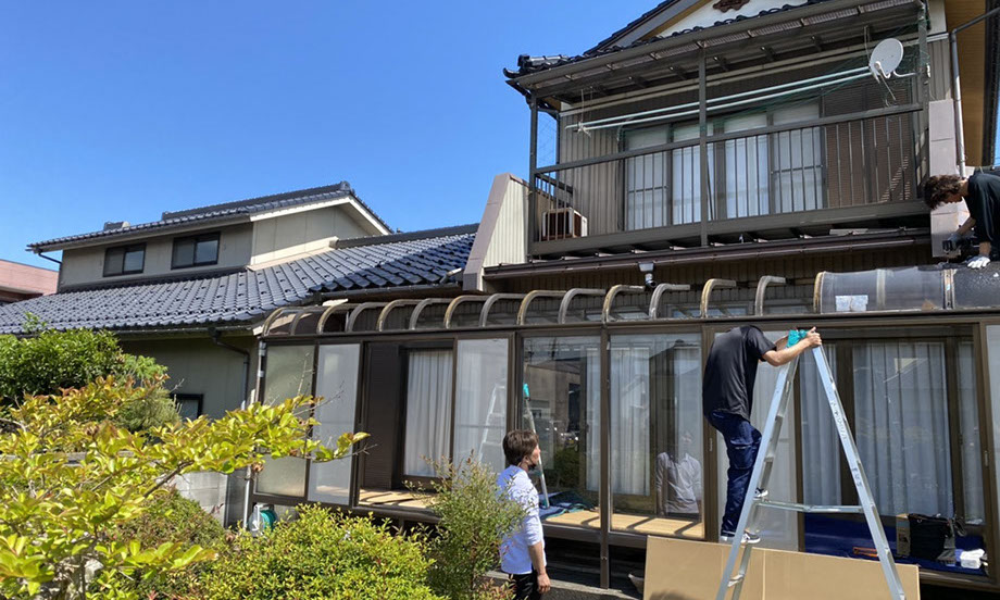 年始の豪雪で壊れてしまいサンルームの改修工事を行いました