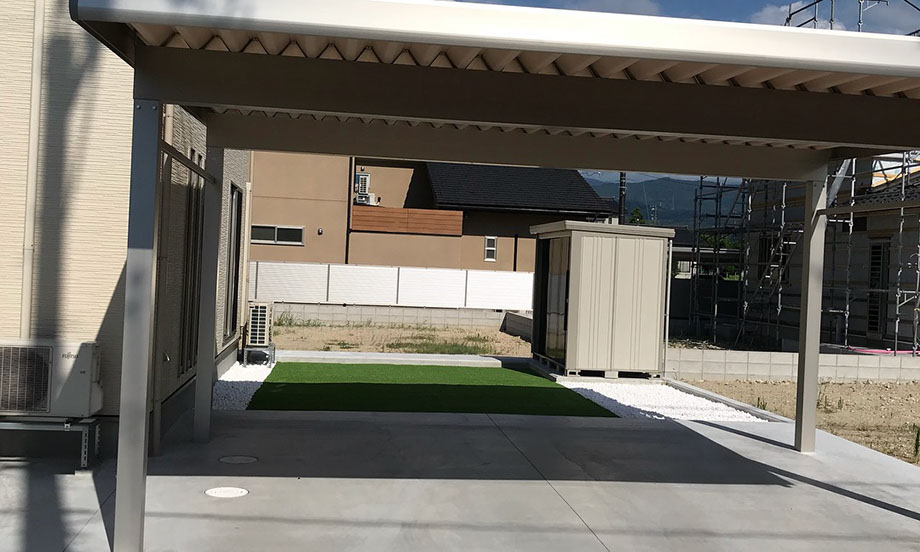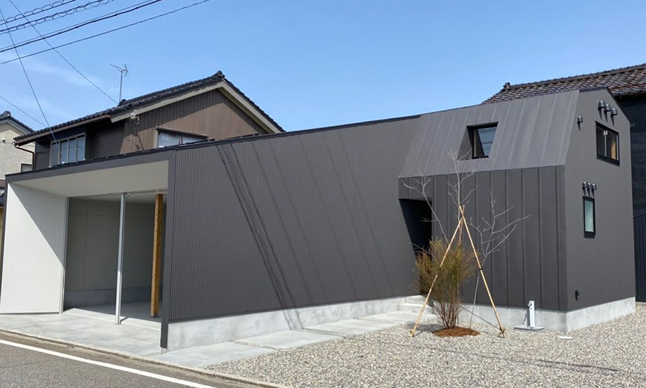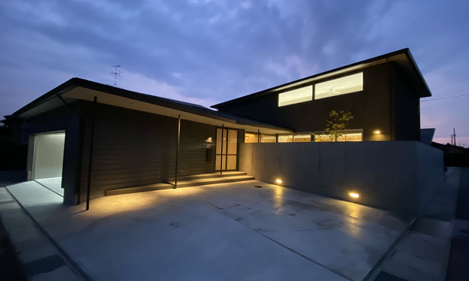 をコンセプトに車が大好きな家主様のご希望で、ローコストでありながら車をいじる際にゆとりのあるインナーガレージを2台分確保しました。