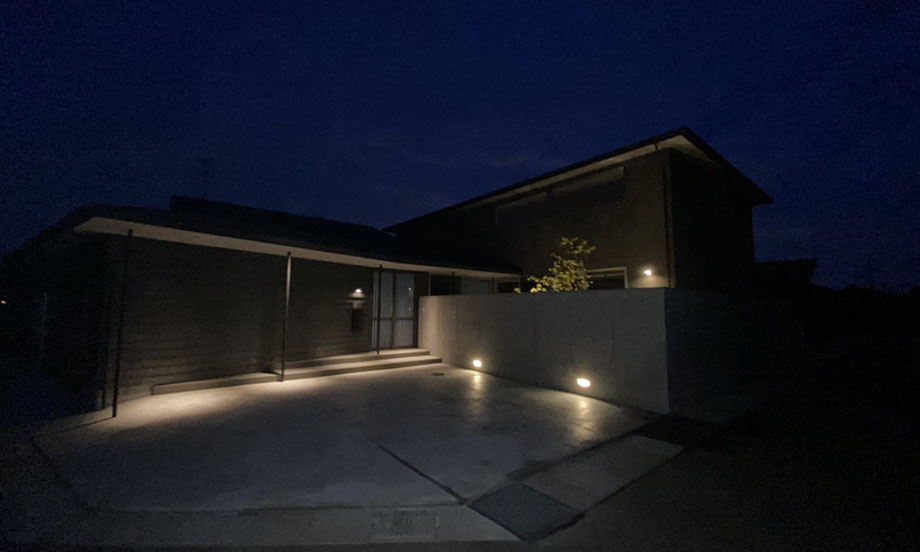 玄関をあがってすぐ『多目的土間』があり、庭と連続する半屋外スペースや、和室と連続した接客スペース、書斎と連続した打ち合わせスペースなど様々な用途に応じた使い方ができる空間になっております
