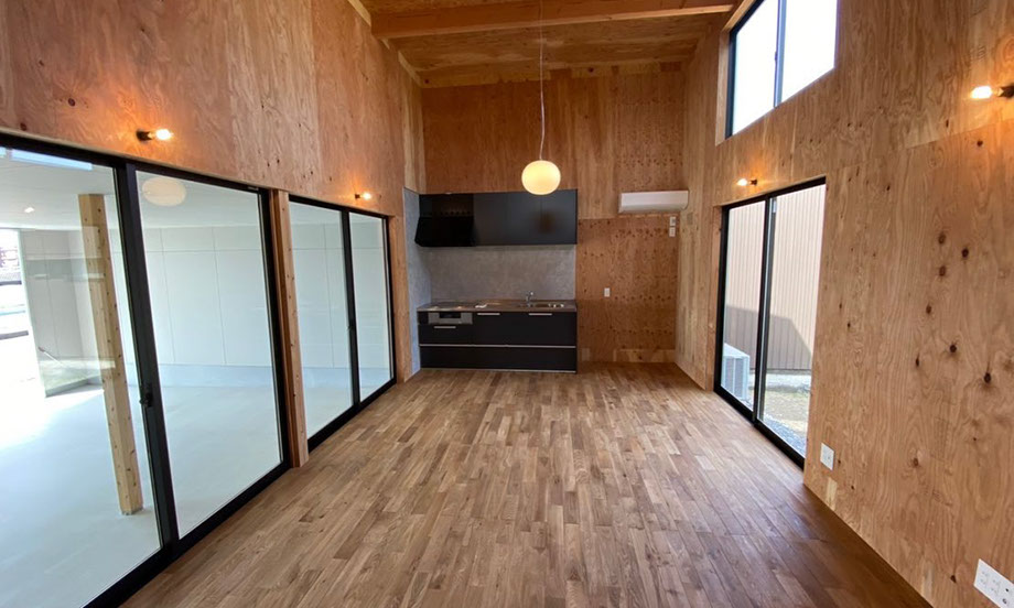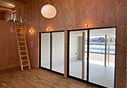 居住スペースには壁紙は使わず全て合板仕上げになっており、お部屋そのものがインテリアになるよう仕上げております。